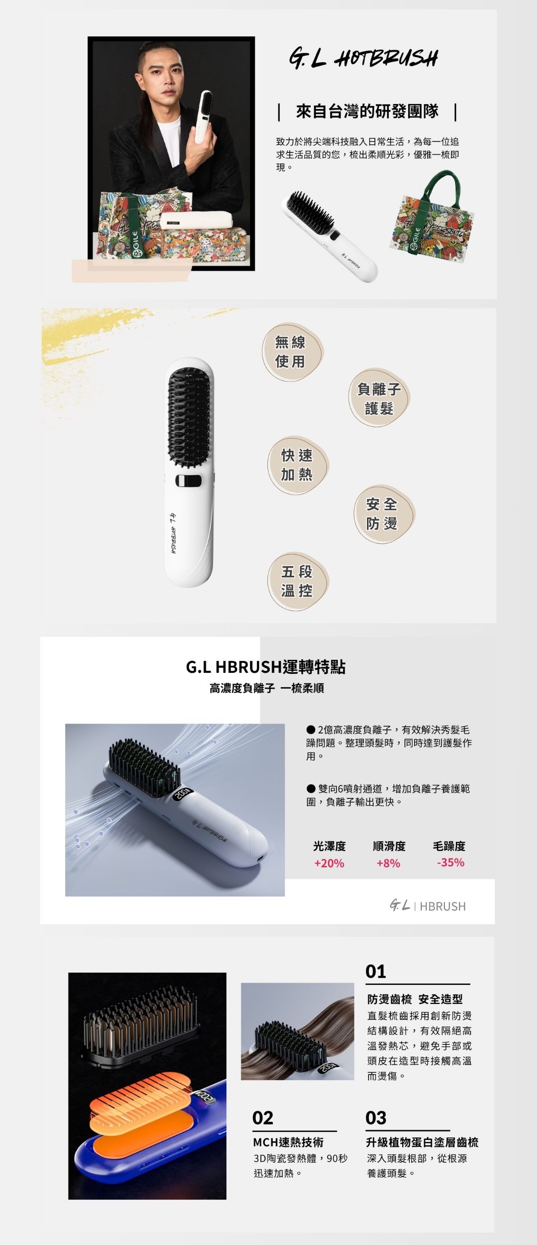 G.L HOTBRUSH吉樂負離子無線直髮梳 | 李享家,閃耀你的生活