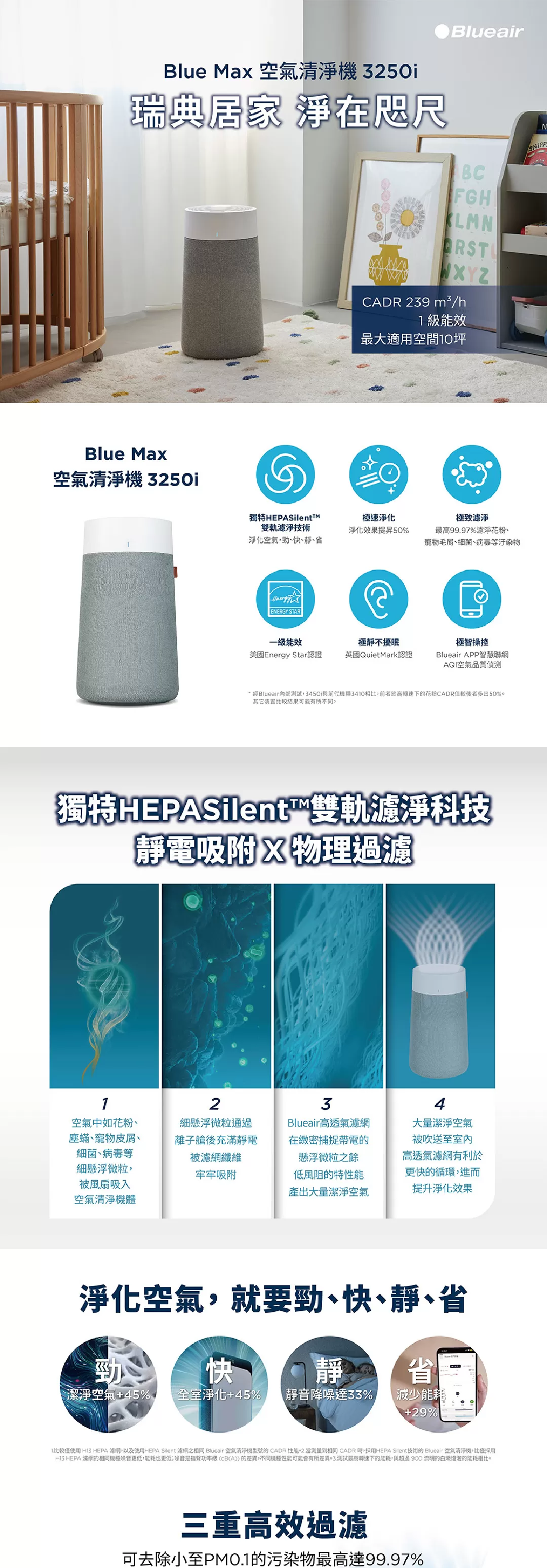 名稱:【Blueair】BlueMax空氣清淨機 3250i(10坪適用)