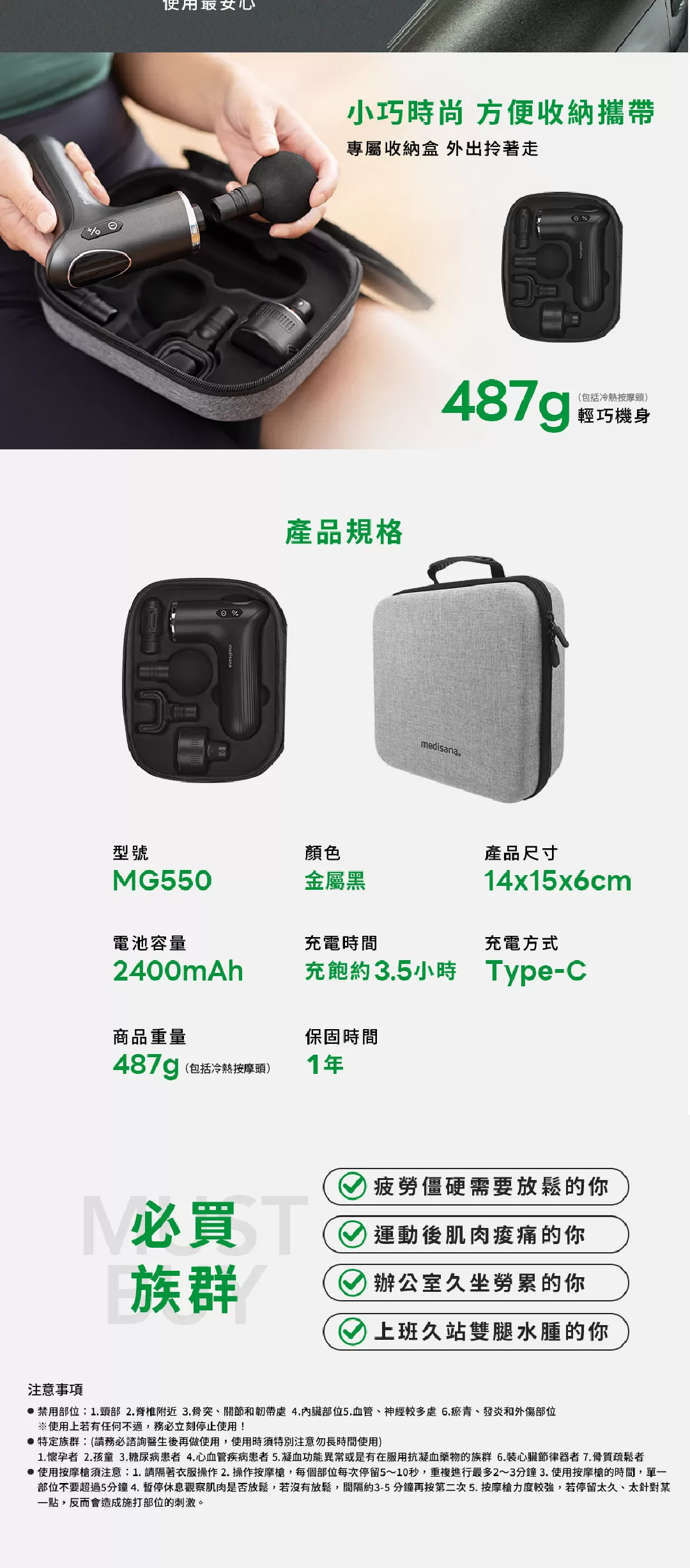 名稱:【德國 medisana MG 550】隨身冷熱震動按摩槍