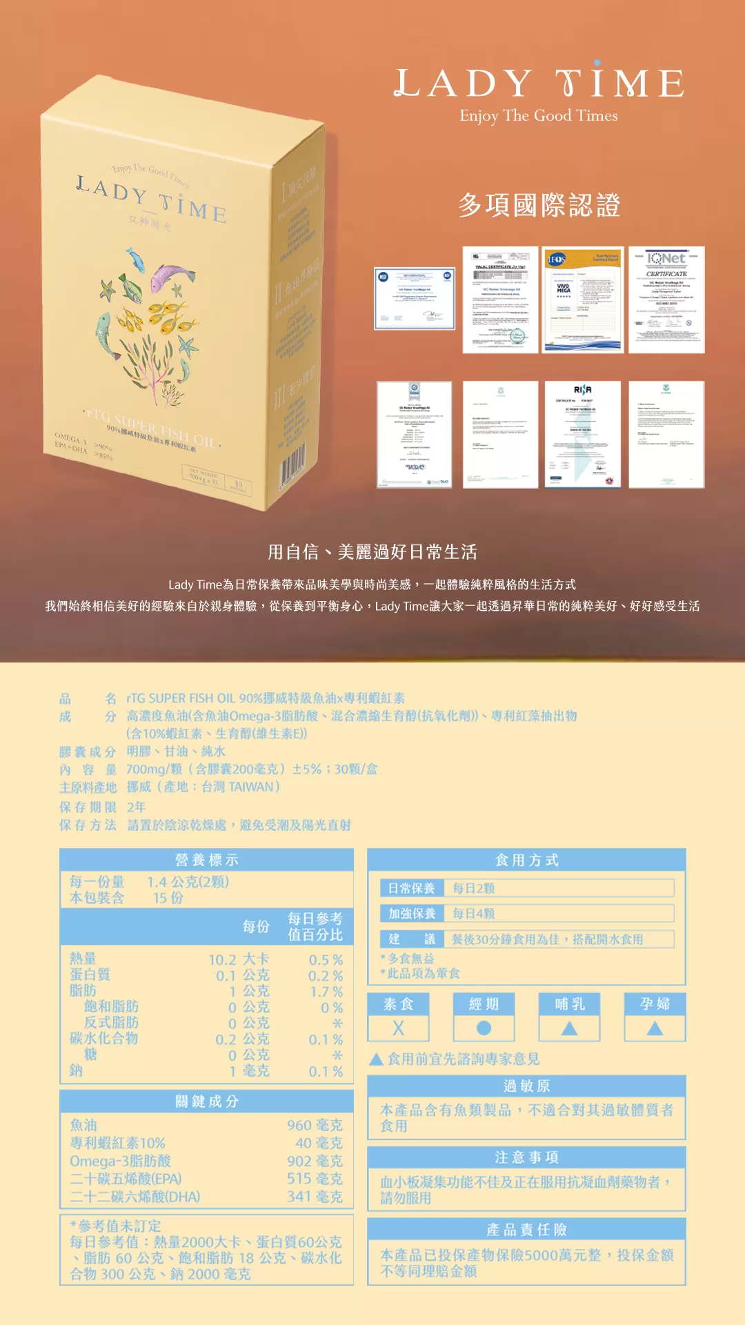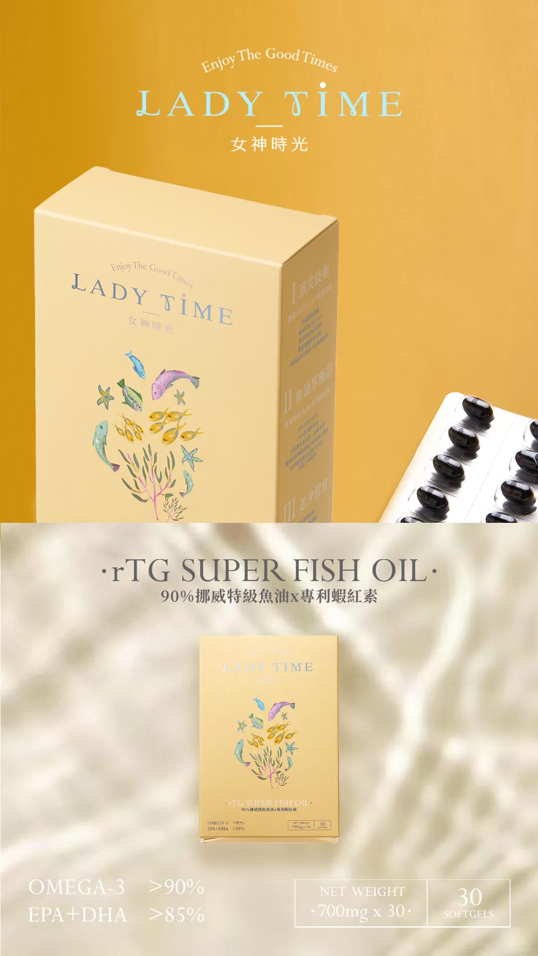 名稱:LADY TIME 90%挪威特級魚油×專利蝦紅素