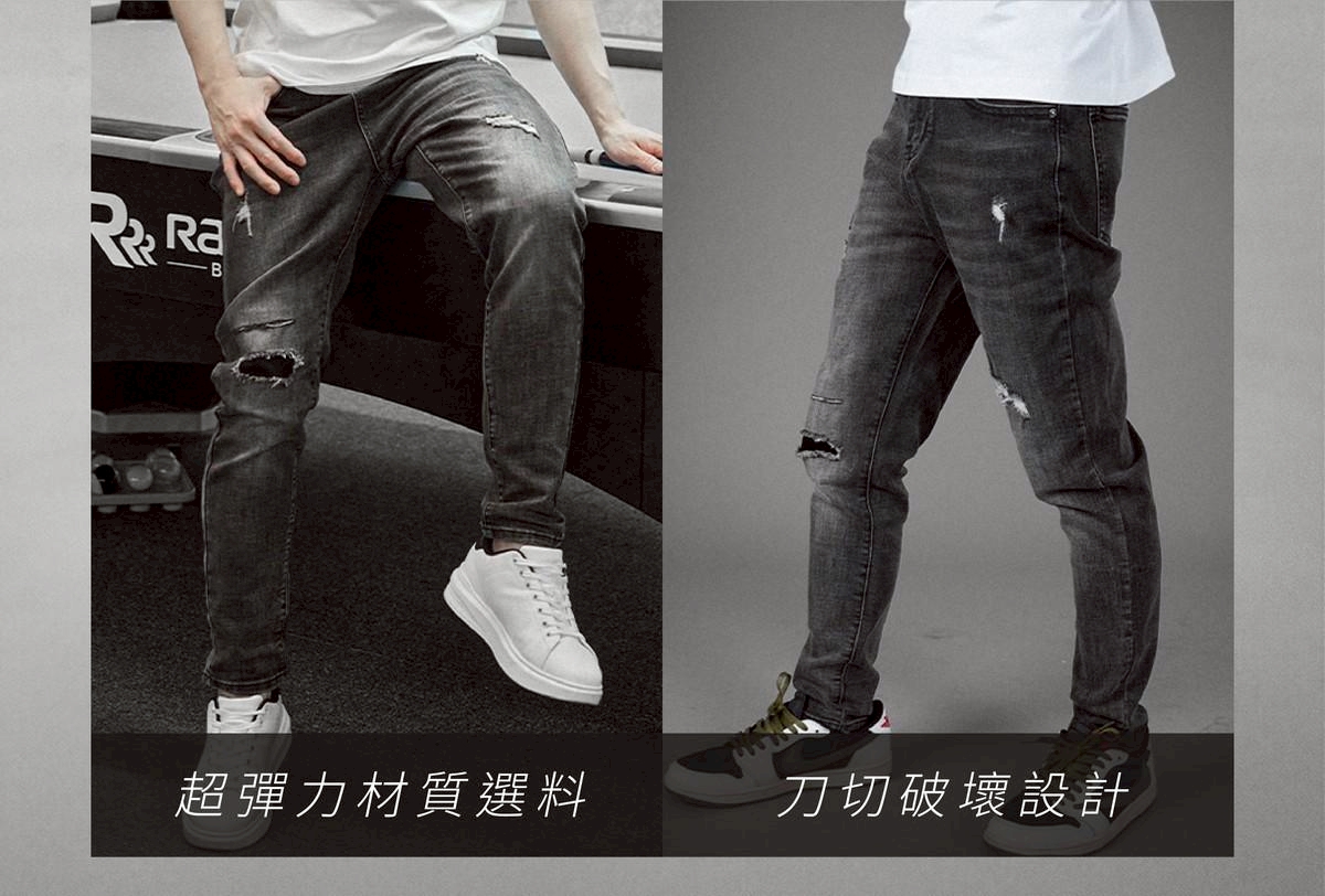 深灰刷破重磅彈力修身牛仔褲(36腰) 單件