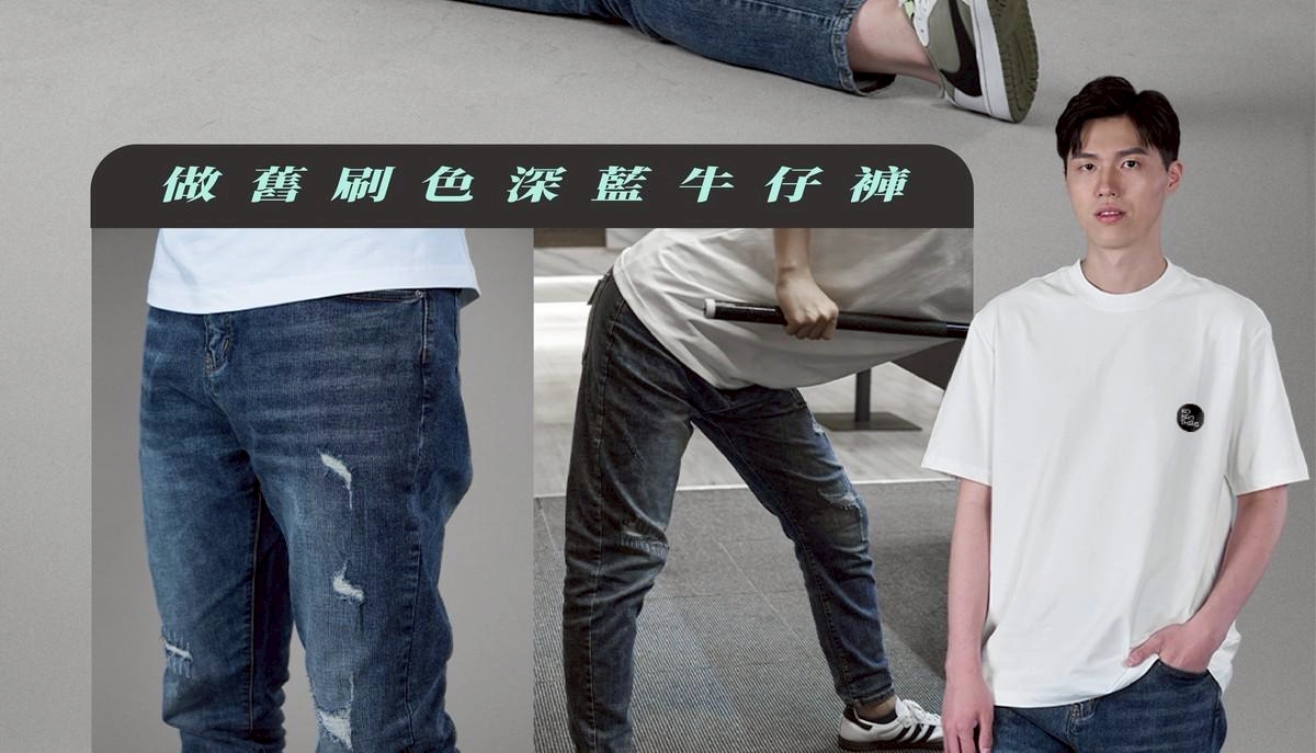 深藍刷破重磅彈力修身牛仔褲(34腰) 單件