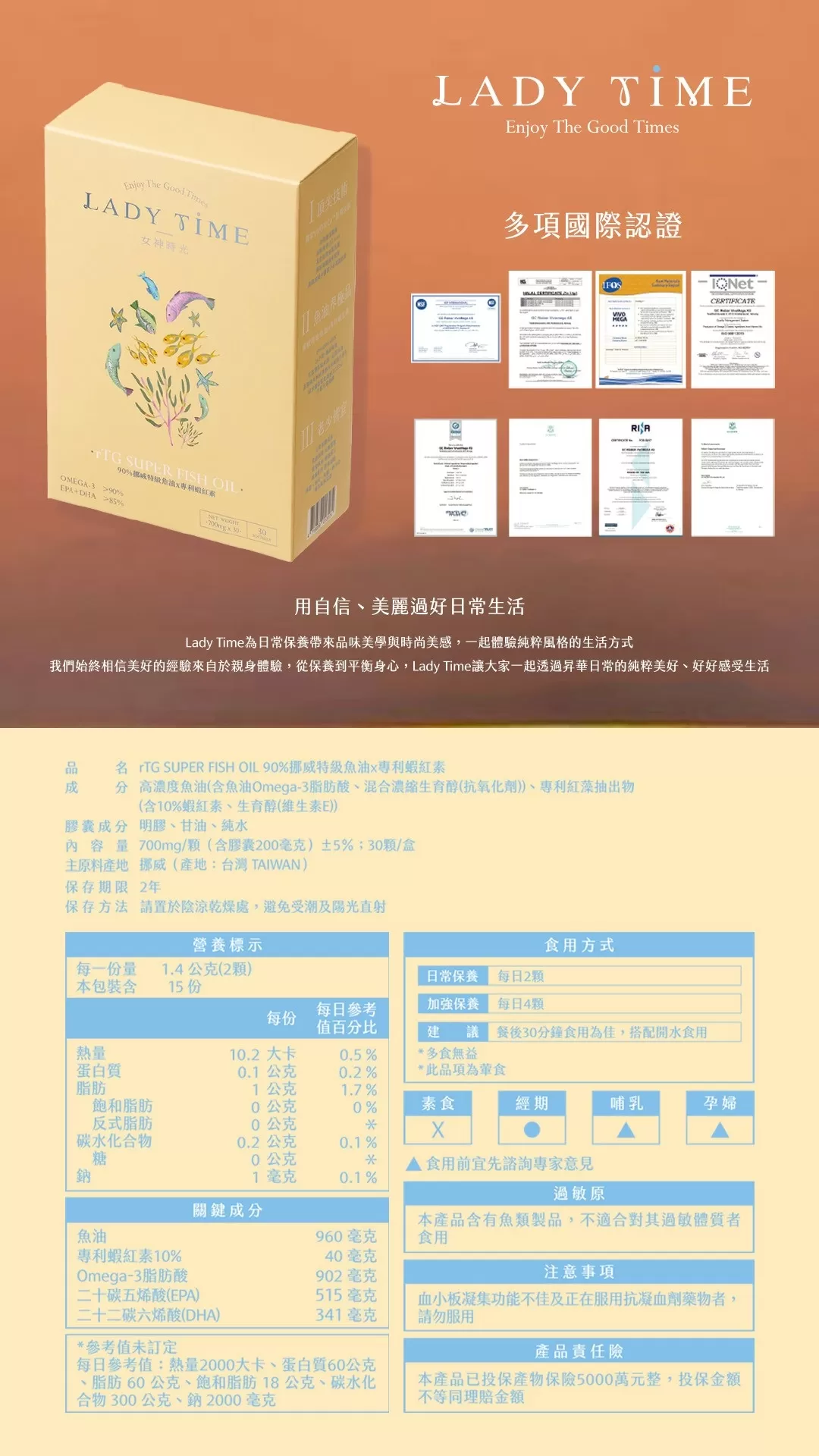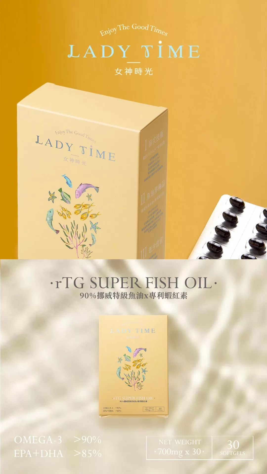 LADY TIME 90%挪威特級魚油×專蝦紅素x4盒 | 李享家,閃耀你的生活
