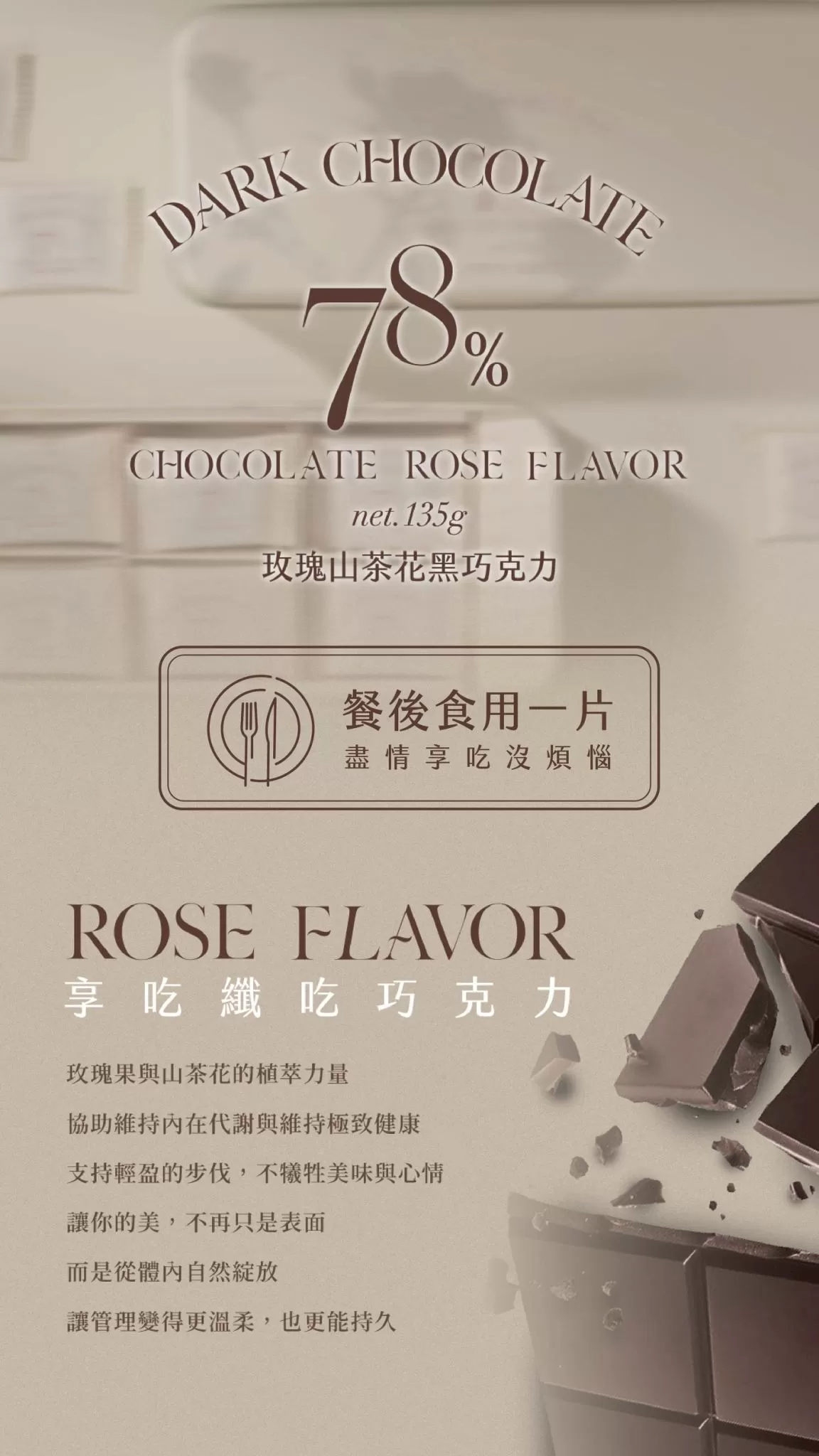 名稱:78%玫瑰山茶花黑巧克力-餐後