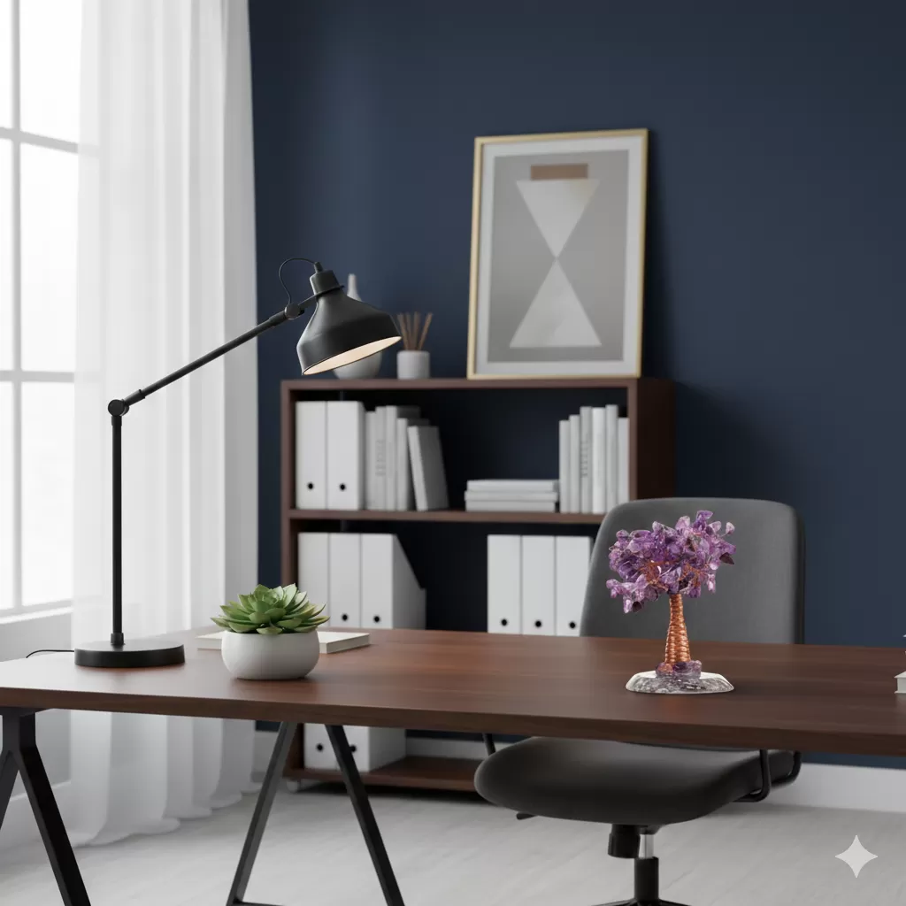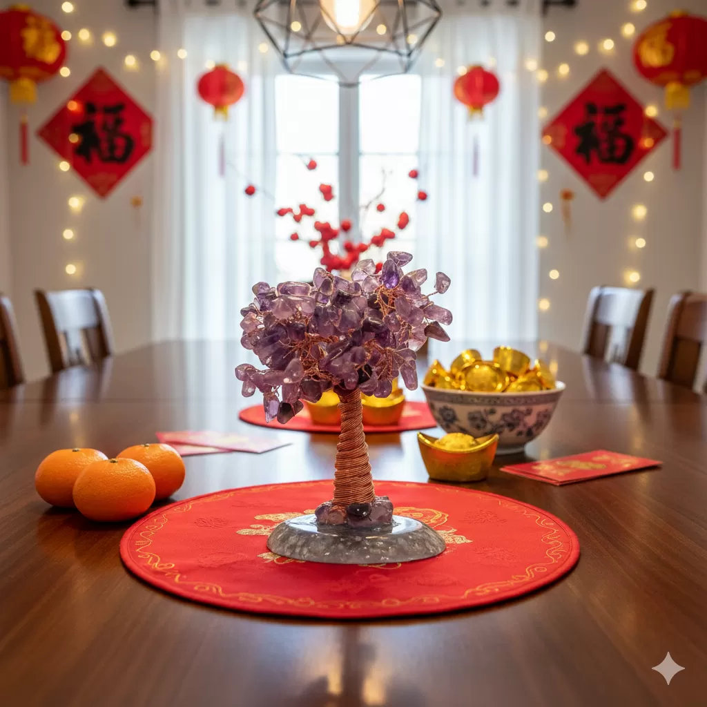 黑圓底古松樹(紫水晶)將「守、聚、旺」三重能量合而為一,寓意財源穩進、事業紮根、貴人相助,特別適合擺放於辦公桌、櫃檯或居家財位,為空間帶來安定而持續的好運能量。