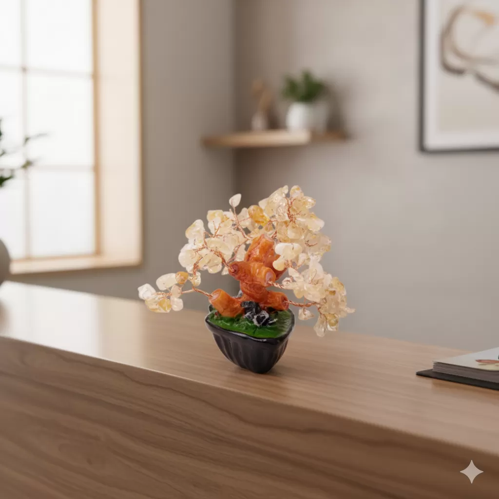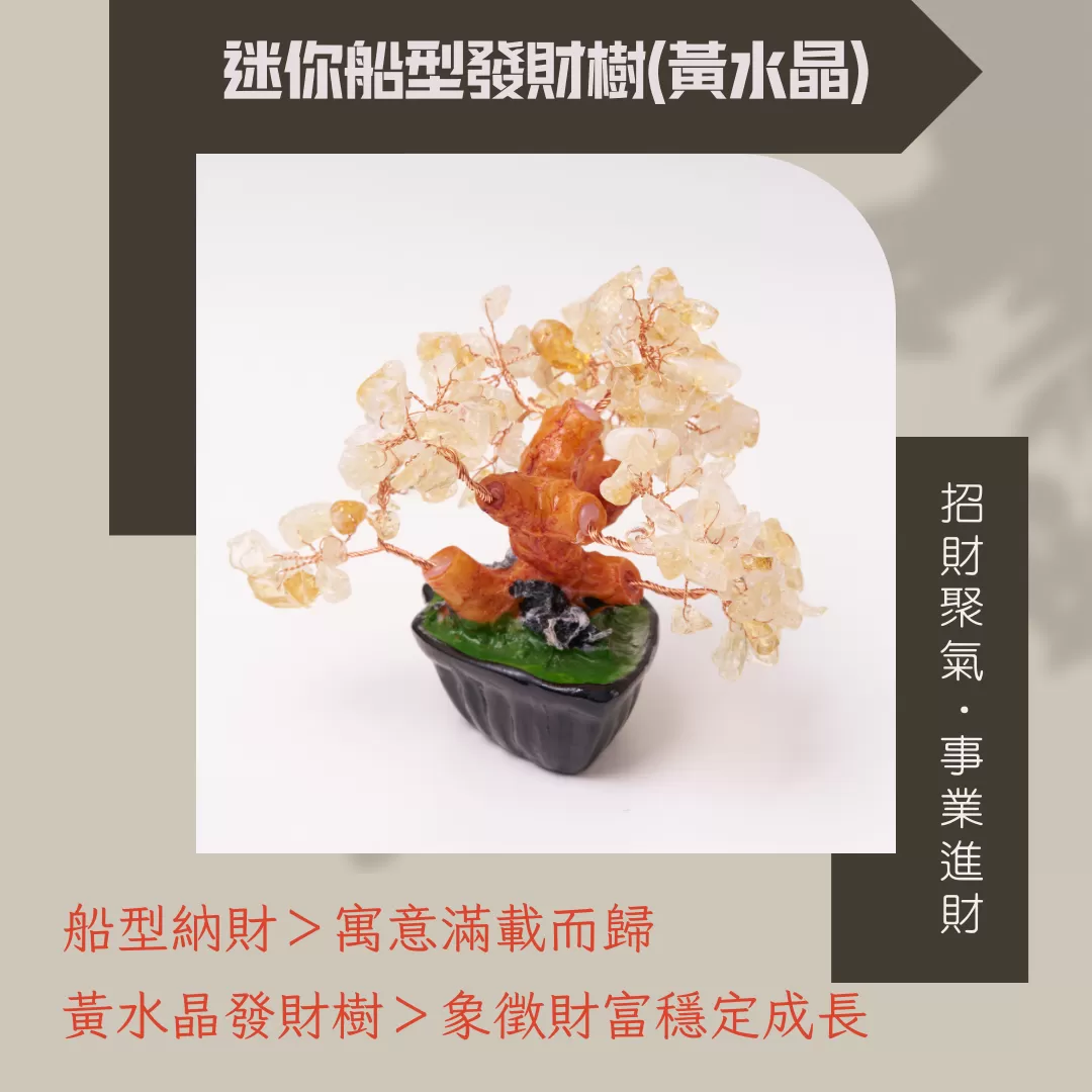 商品介紹:以象徵財富與正能量的黃水晶打造樹葉,搭配船型盆器設計,寓意「財來有路、富貴啟航」。細緻樹枝層層展開,如同財源不斷延伸、生生不息,為空間注入溫暖而穩定的能量。黃水晶自古被視為招正財、旺事業的能量水晶,適合擺放於辦公桌、收銀台、書桌或居家財位。迷你尺寸不佔空間,卻能帶來滿滿好運,是開業祝賀、新年送禮或自用開運的理想選擇。