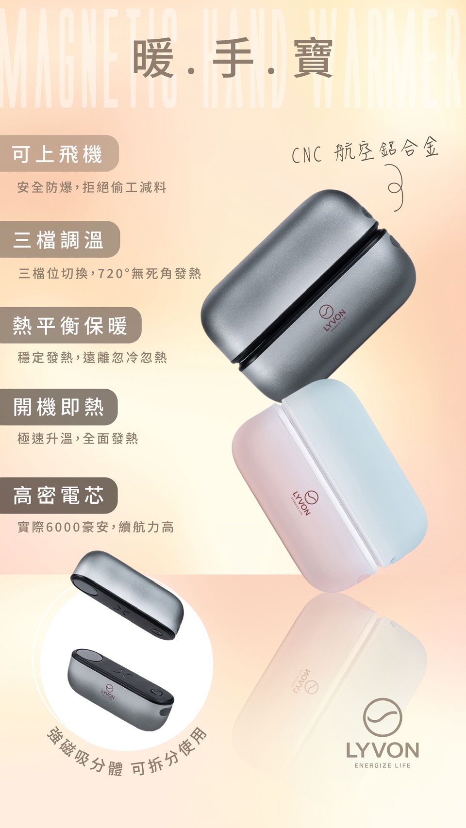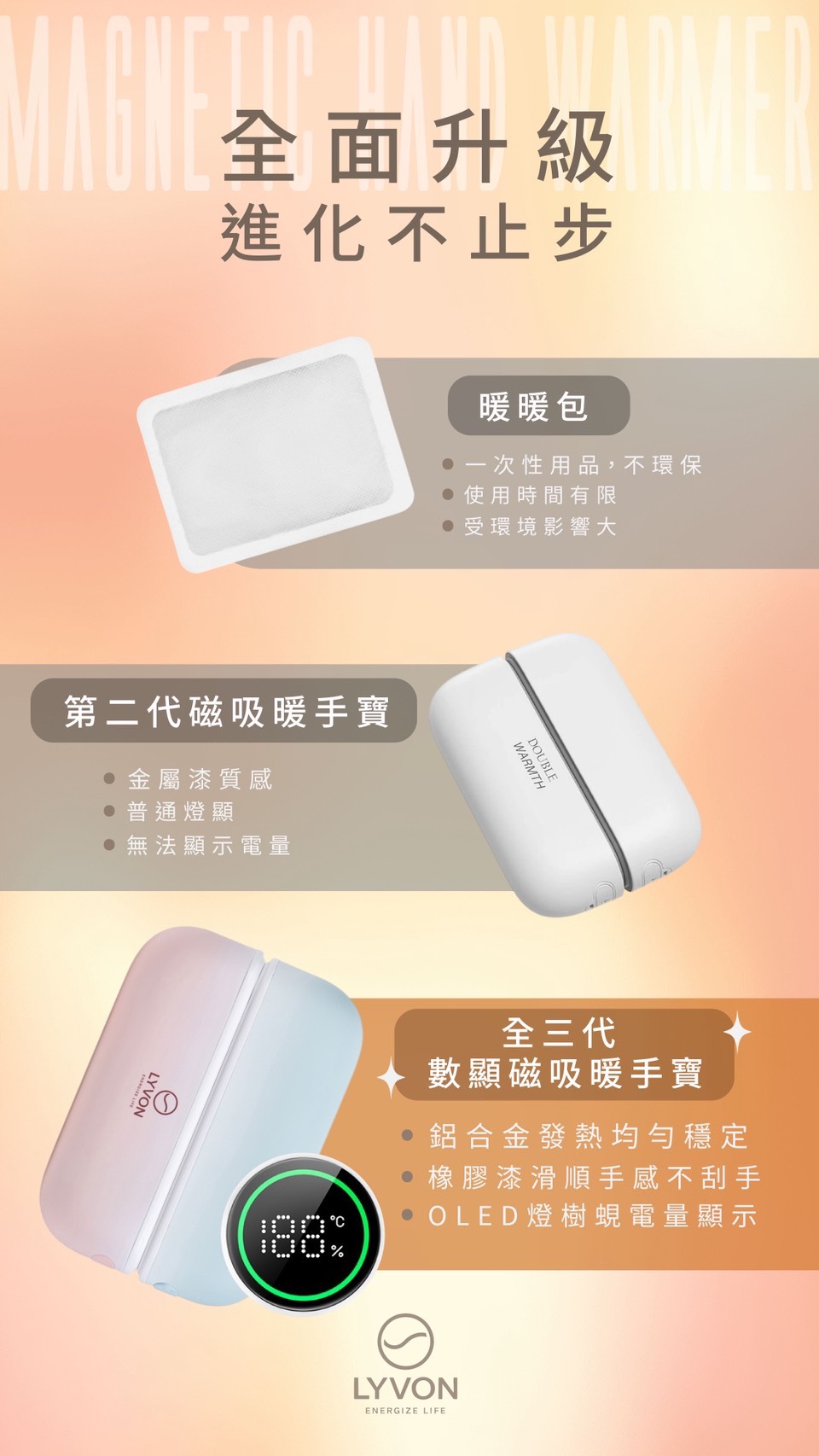 第三代LYVON暖手寶(附充電線+收納袋)