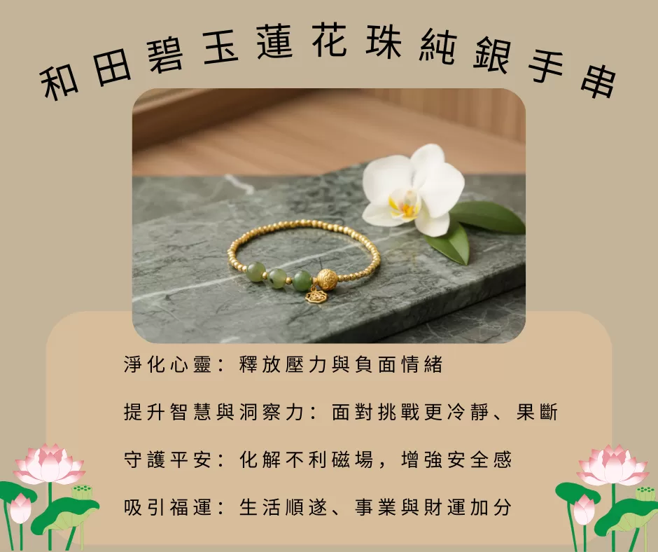 🔥 和田碧玉蓮花珠純銀手串|淨化心靈・增添福運與智慧