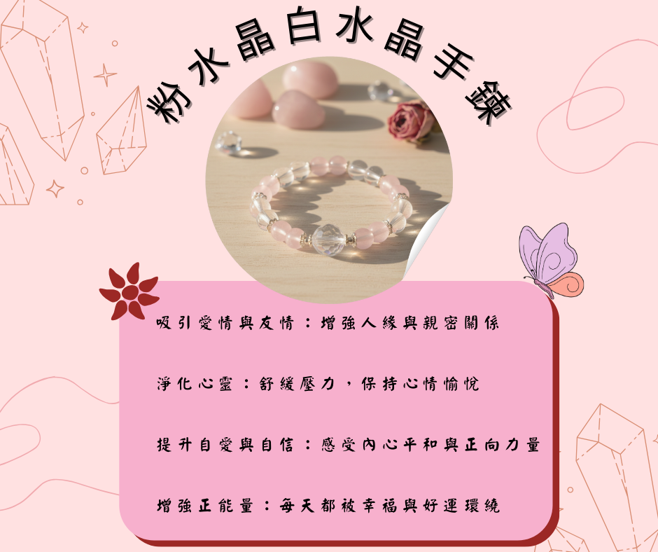 🔥 粉水晶白水晶手鍊|愛情磁場・心靈平衡雙加分