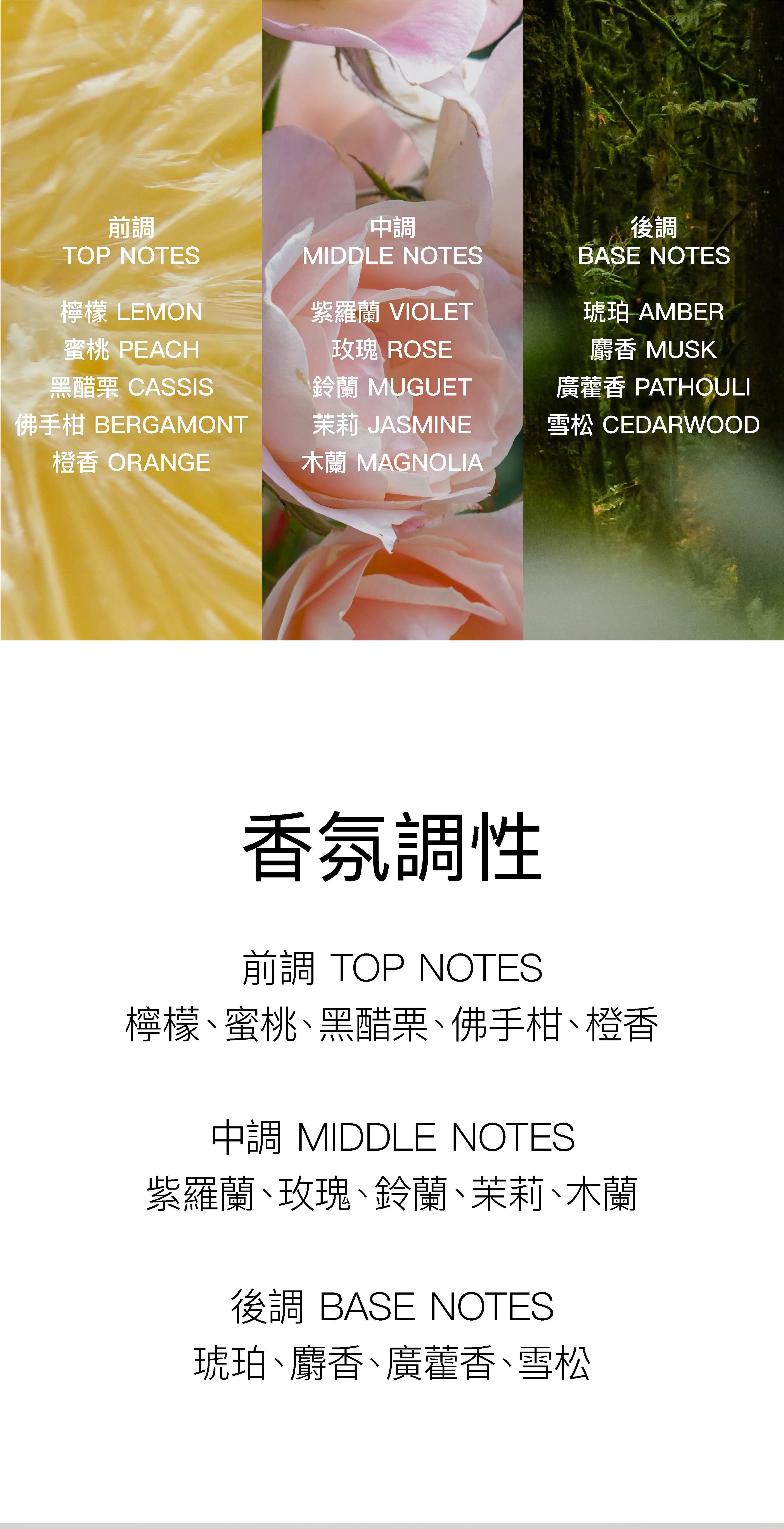 前調:新鮮薑、黑香豆、粉紅胡椒