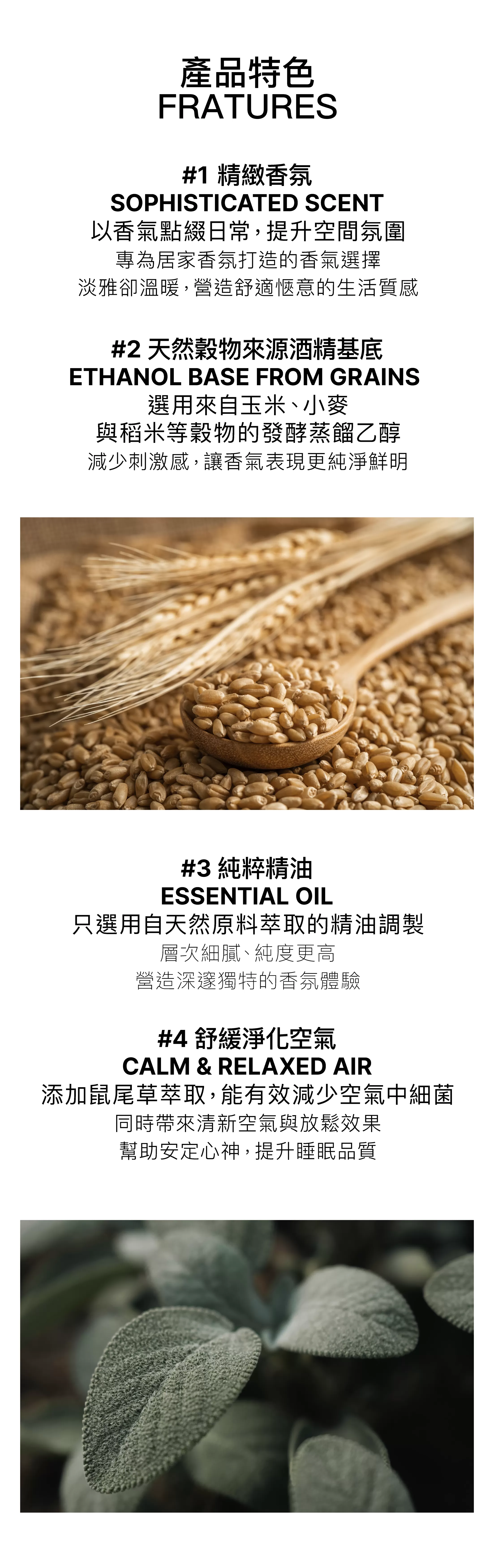 ✔ 含鼠尾草萃取,有效淨化空氣與吸附異味