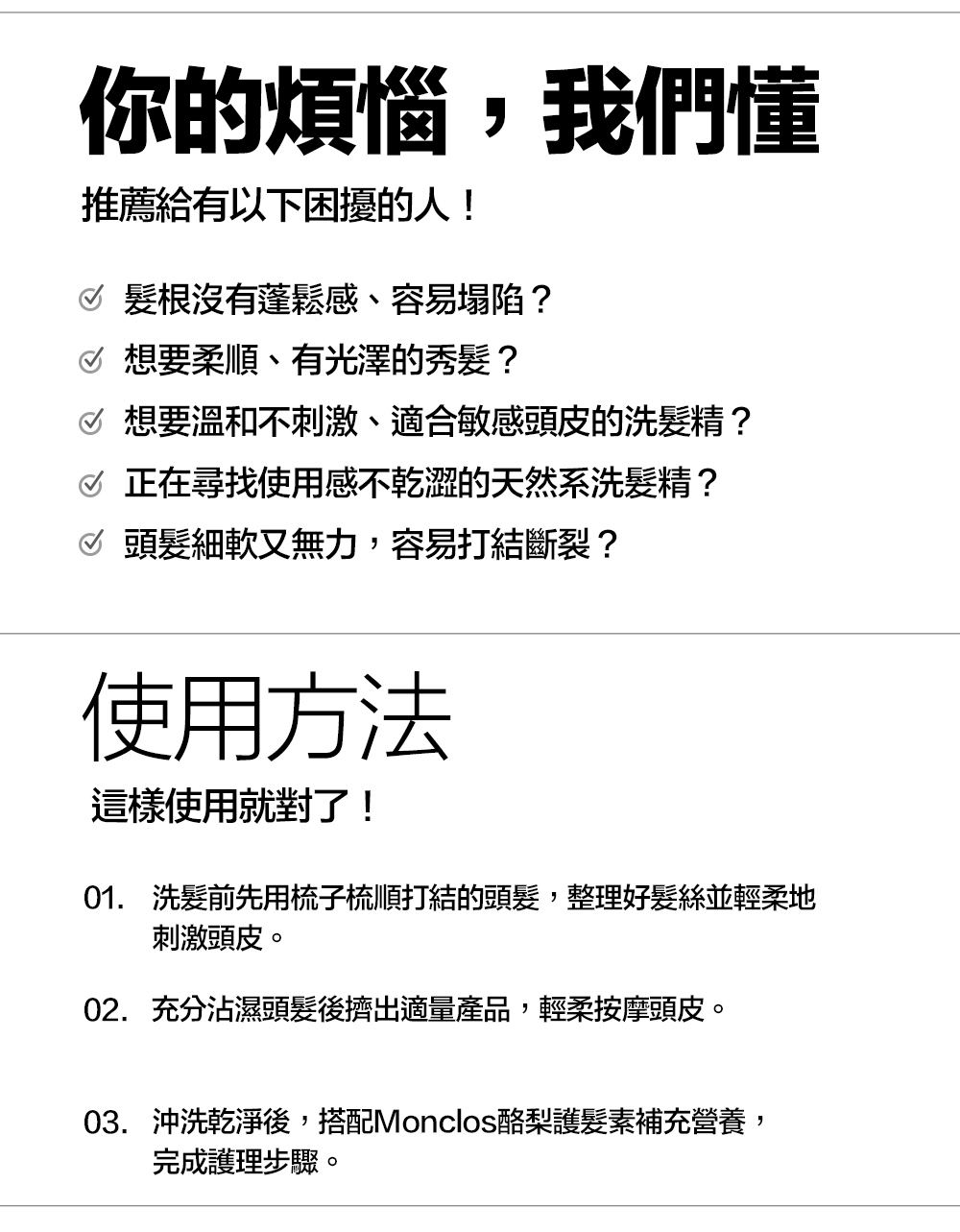 MONCLOS 香氛洗髮露|清爽潔淨不乾澀 | 李享家,閃耀你的生活