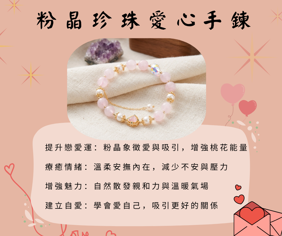 ✨粉晶珍珠愛心手鍊|溫柔療癒・喚醒愛與吸引力