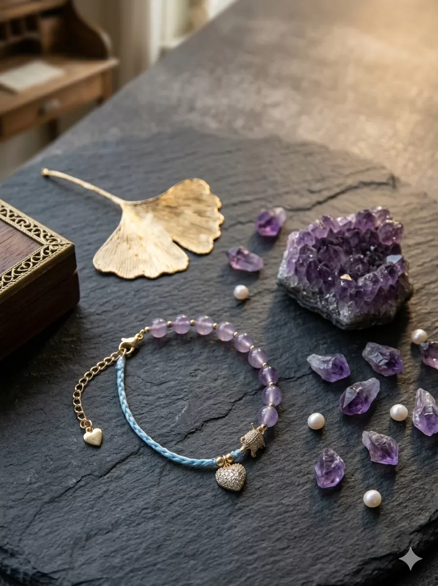 ✨紫玉愛心藍手繩|溫柔守護・平衡與智慧能量並存