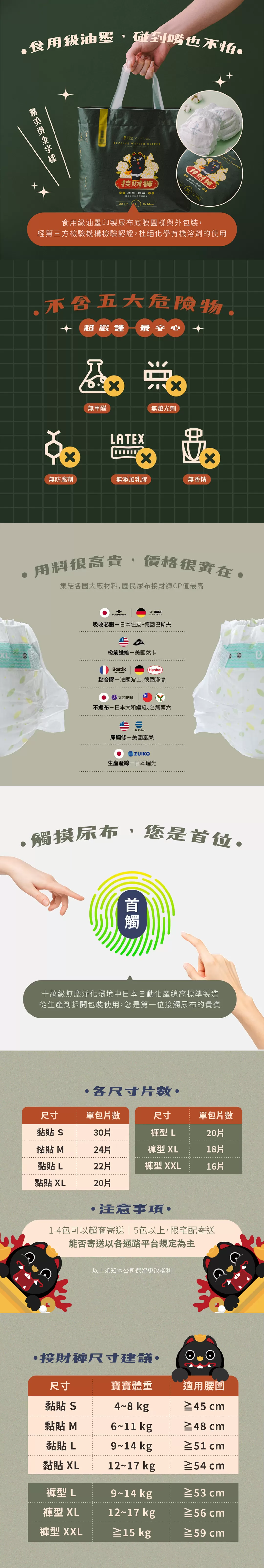名稱:波比PureBaby植萃抑菌接財褲(黏貼型)單箱XL