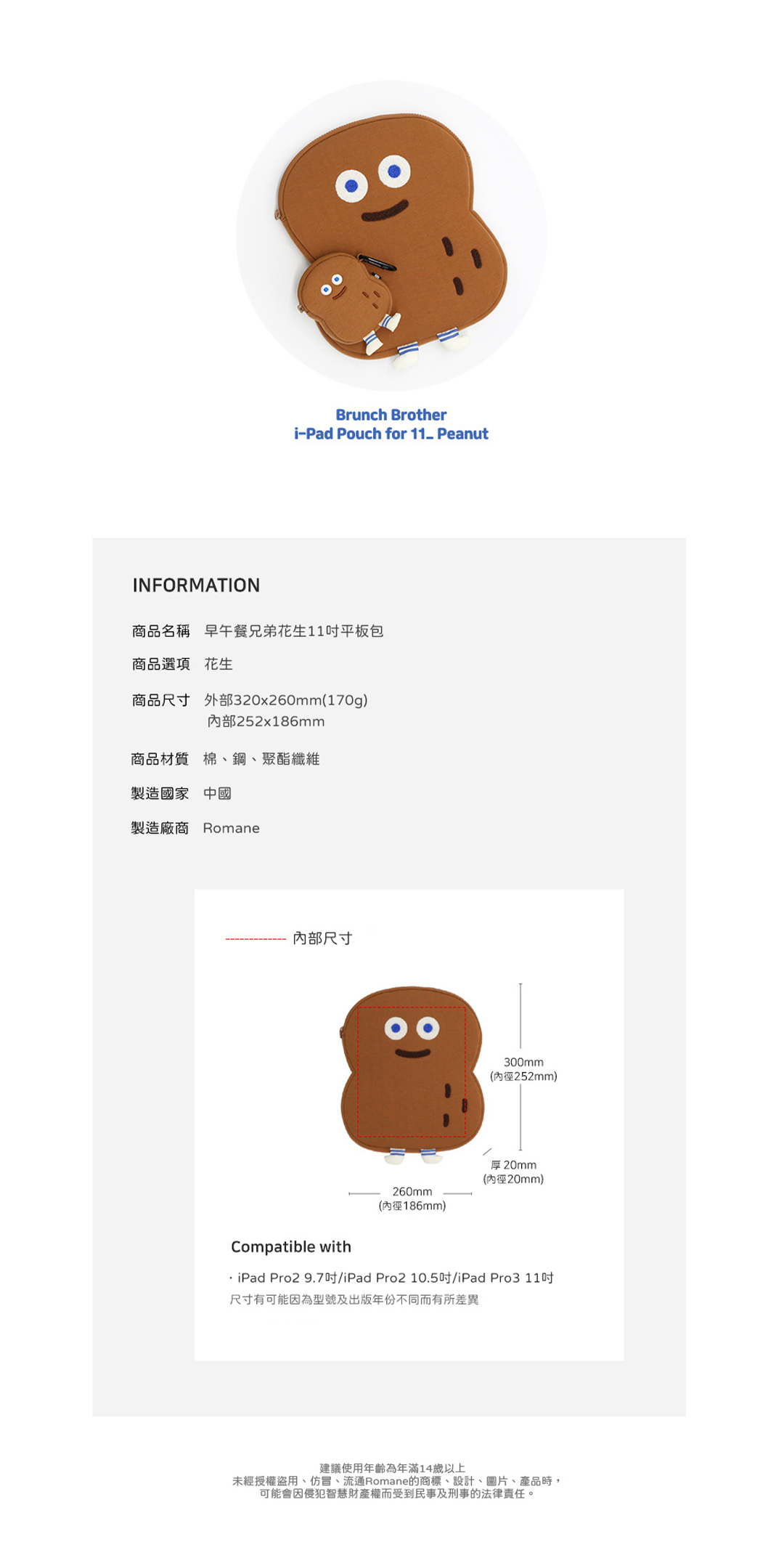 名稱:Brunch Brother 11吋平板包-花生