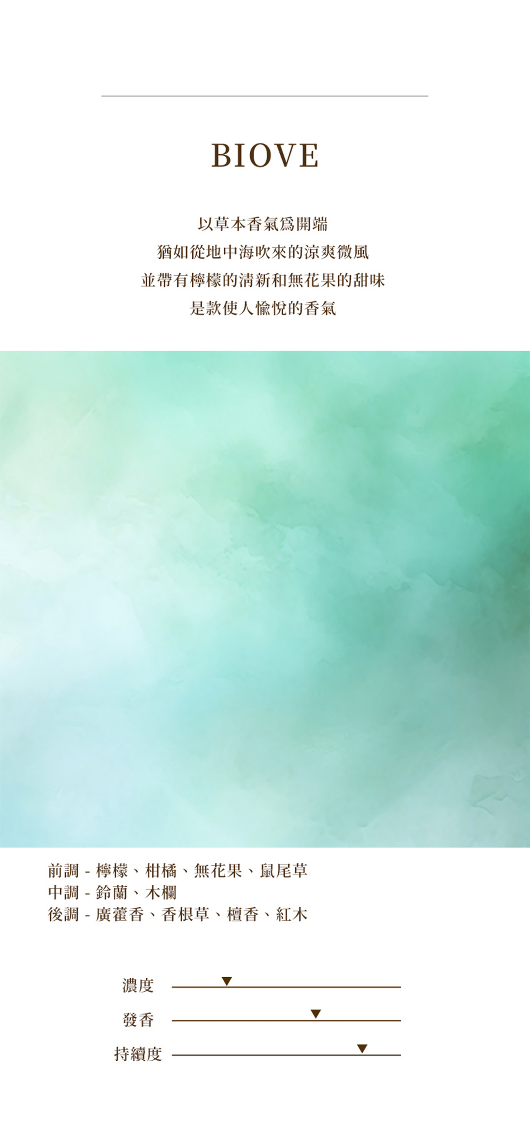 草本香氣、持久度高