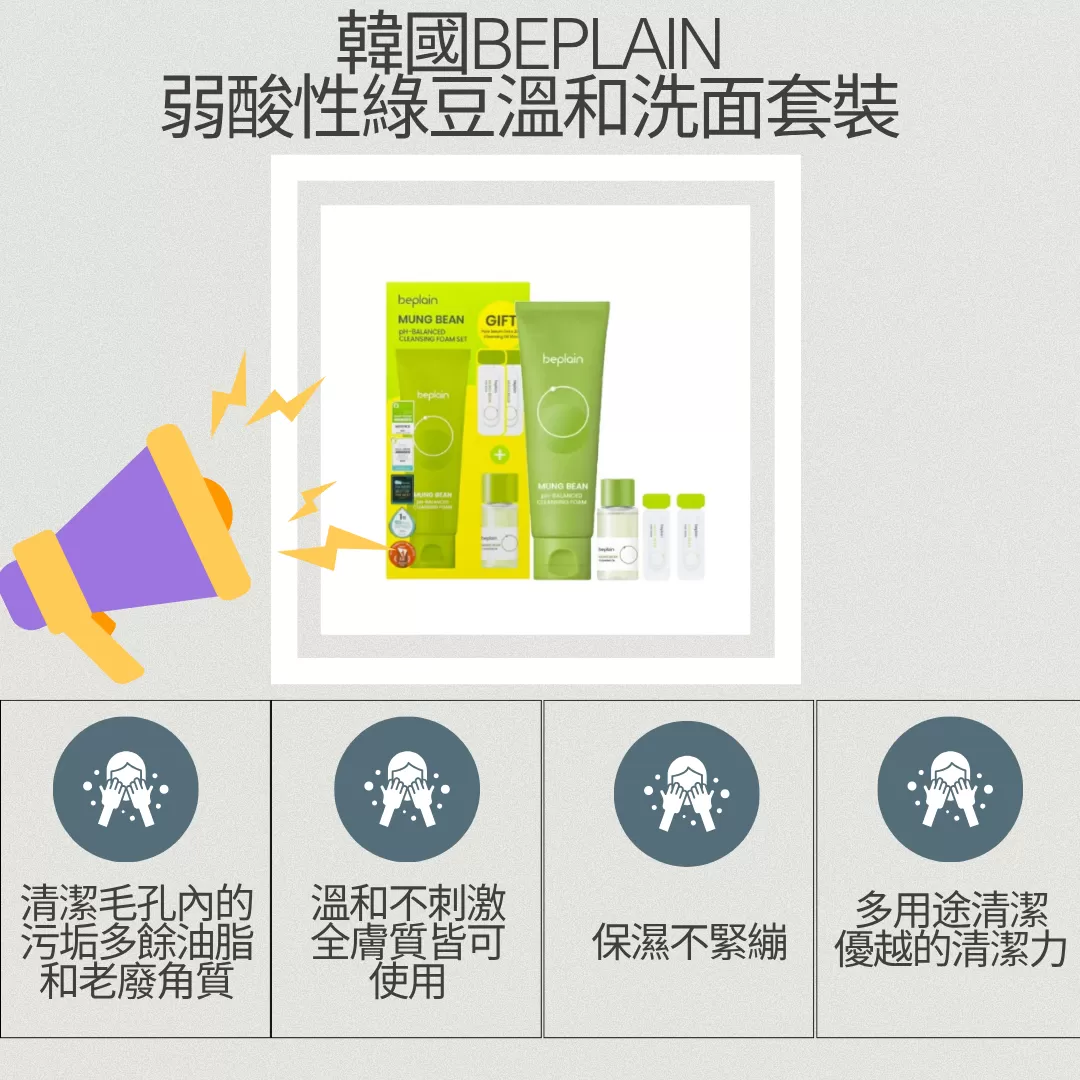 名稱:韓國BEPLAIN弱酸性綠豆溫和洗面套裝
