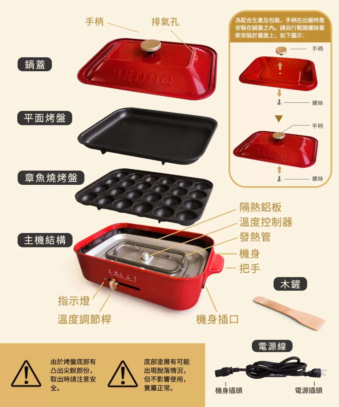 材質:機身、鍋蓋:鋼、酚醛樹酯等